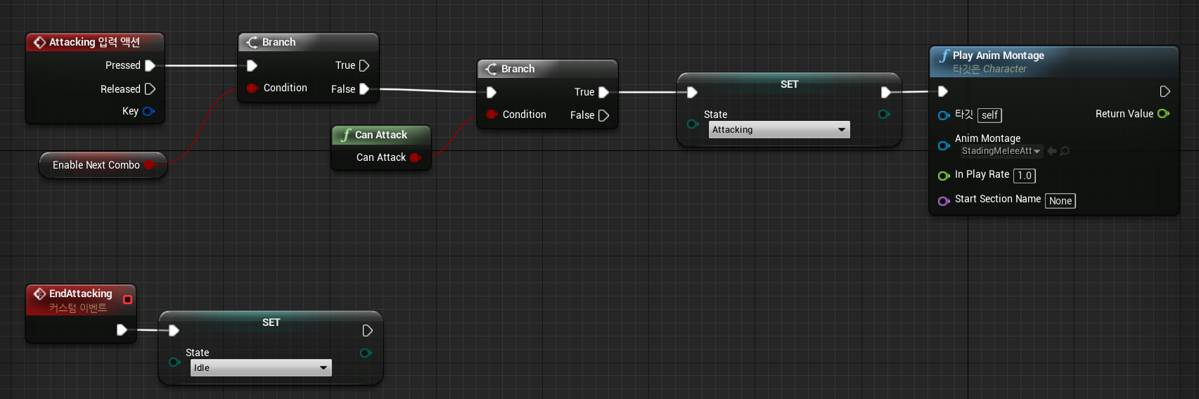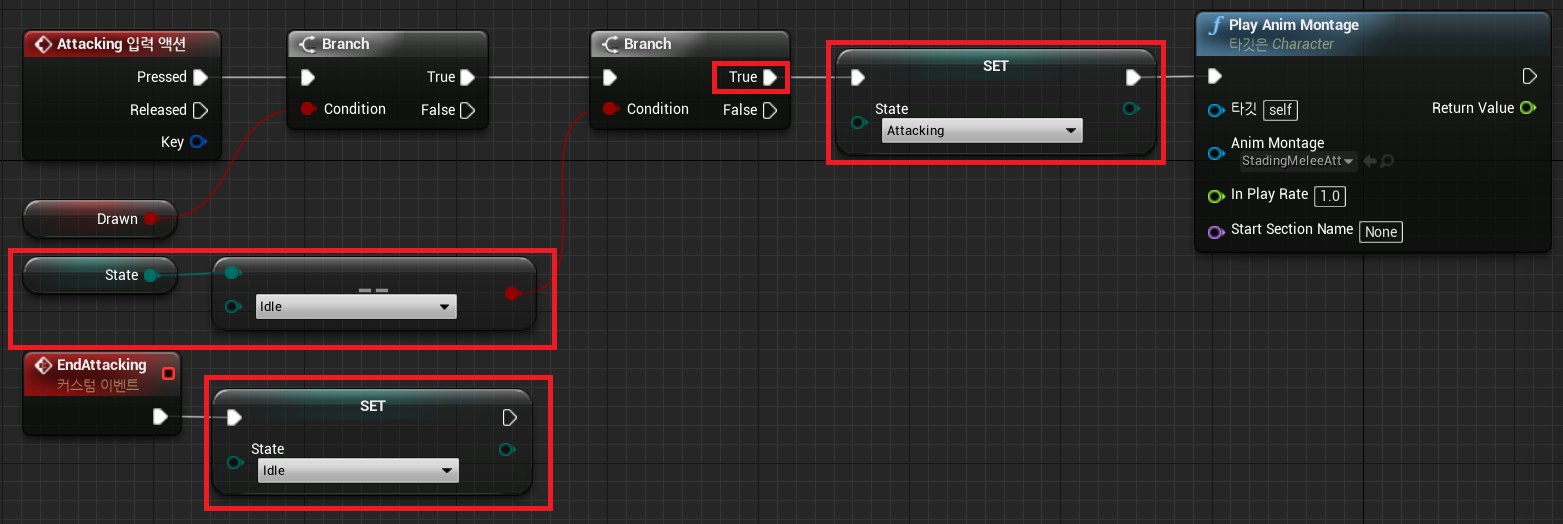 Get State 후 == 로 다음과 같이 처리하여 Idel(대기상태) 일 경우만 공격에 들어갈 수 있도록 처리하여 준다.