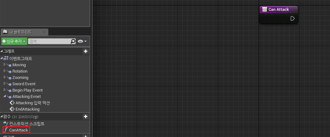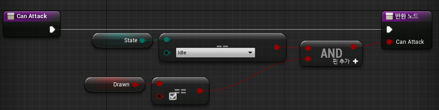 2) 다음과 같이 생성한다, 반환노드에 Can Attack Boolean 을 추가하고, 퓨어체크도 해 준다.