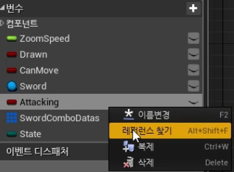 * 콤보가능 구간 변수 "EnableNextCombo"