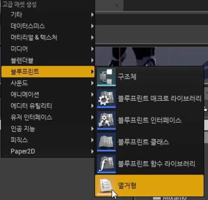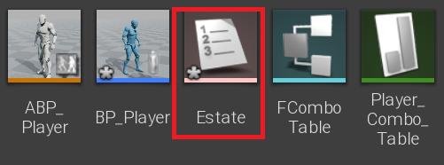 1. "Player" 폴더 > 블루프린트 > 열거형 생성, Rename "Estate"