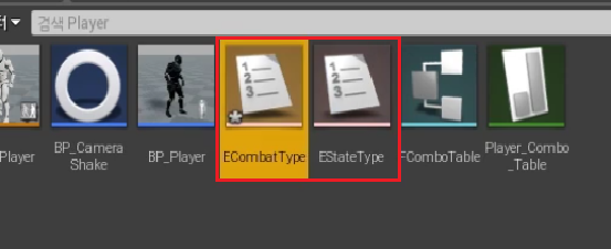 1. "Player" 폴더 > 블루프린트 > 열거형 "ECombatType" 생성
