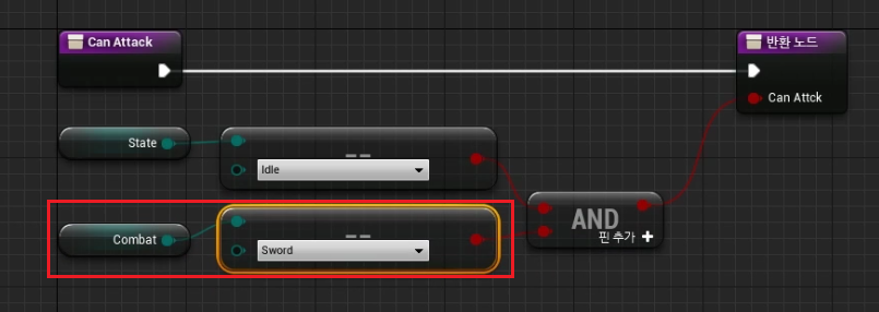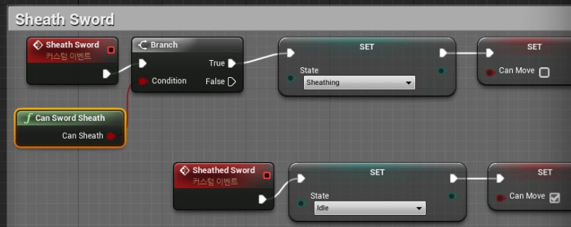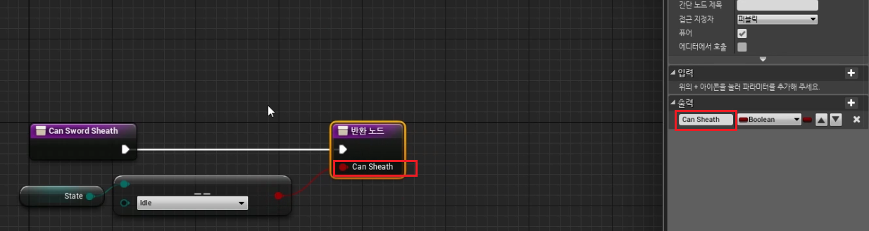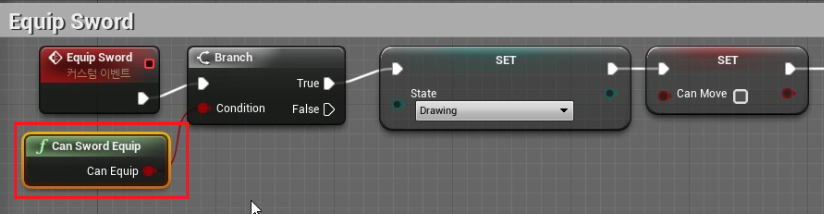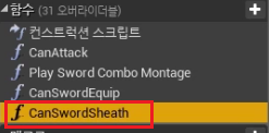 4) "CanSwordEquip" 함수 복사하여 "CanSwordSheath" 를 생성하고 다음과 같이 세팅하여준다.