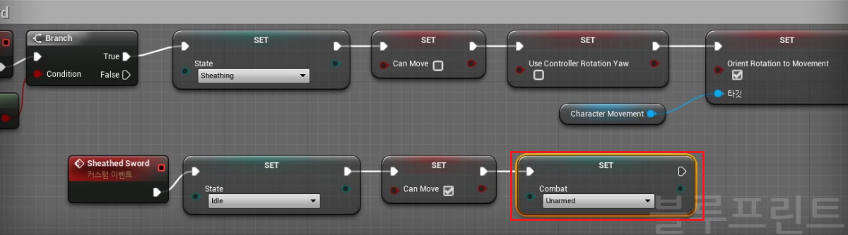 칼을 뺀 상태이기 때문에 Set Combet > "Unarmed" 로 연결