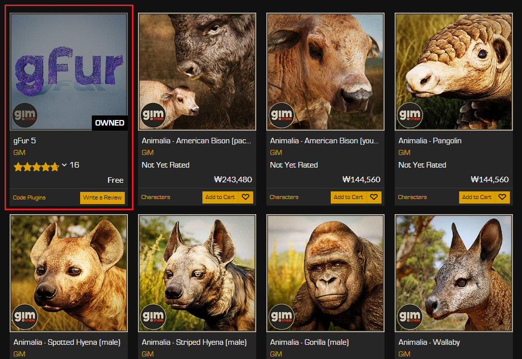 Unreal Engine 마켓플레이스 > GiM 동물 시리즈가 있는데,