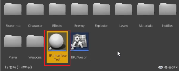 1. 블루프린트 > 블루프린트 인터페이스 > "BP_IWeapon" Rename