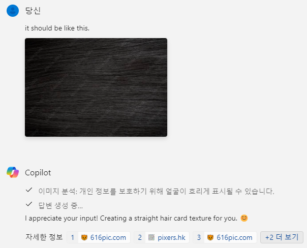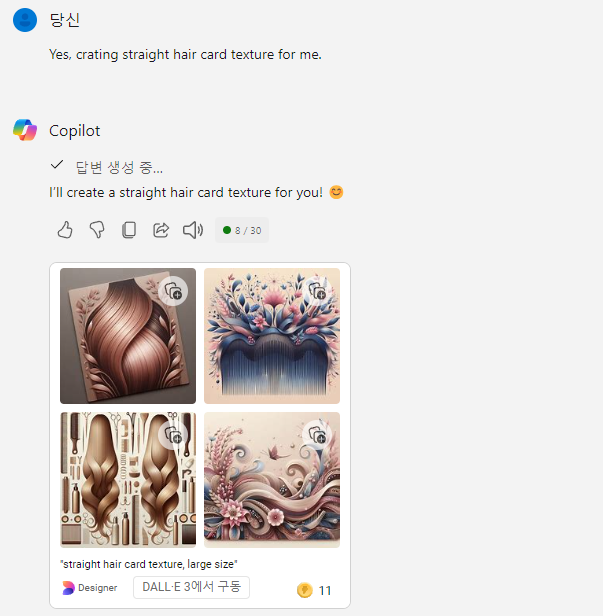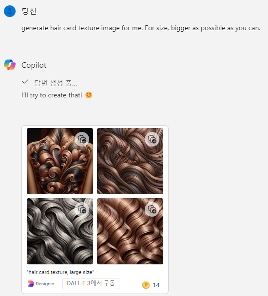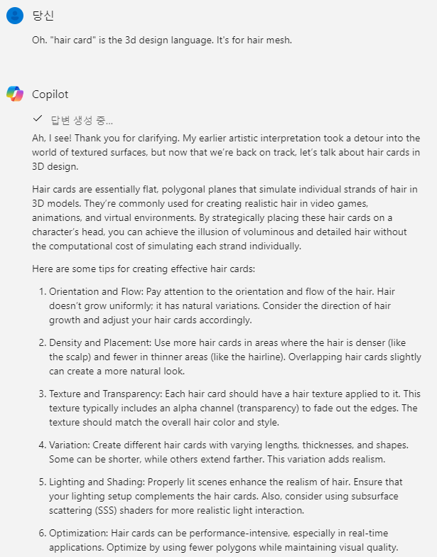 하지만 실패 그래서 hair card 가 3D 디자인 언어라고 입력시켜주고 다시 시도하였다..