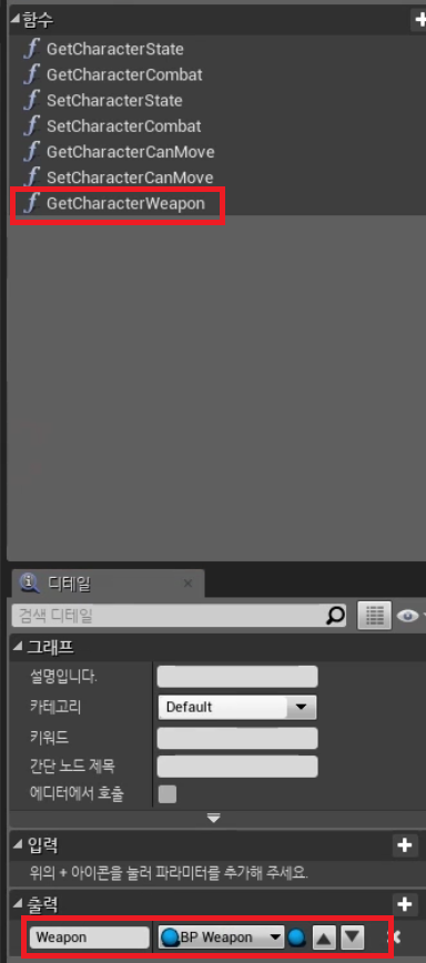 2) BP_IWeapon > GetCharacterWeapon 함수를 생성하여 준다.