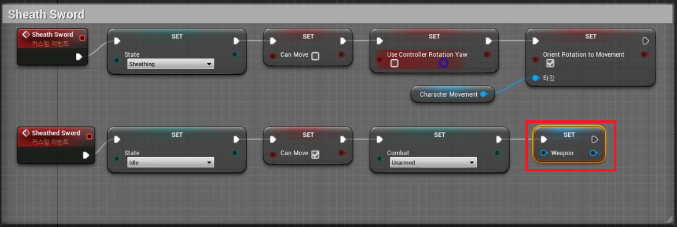 2) BP_Player > 이벤트 그래프 > Sheath Event > 다음과 같이 세팅