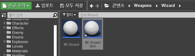 1) 콘텐츠 > Weapons > Wizard > Actor "BP_WizardSkill" 생성