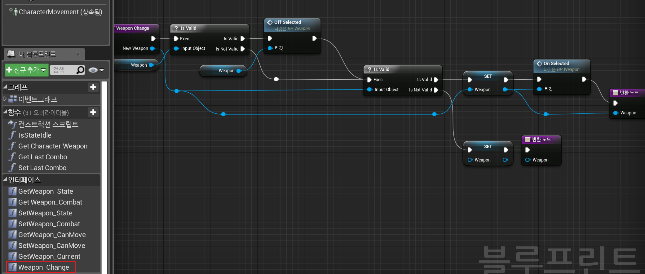 6. BP_IWeapon > 함수 "Weapon_Change" 추가