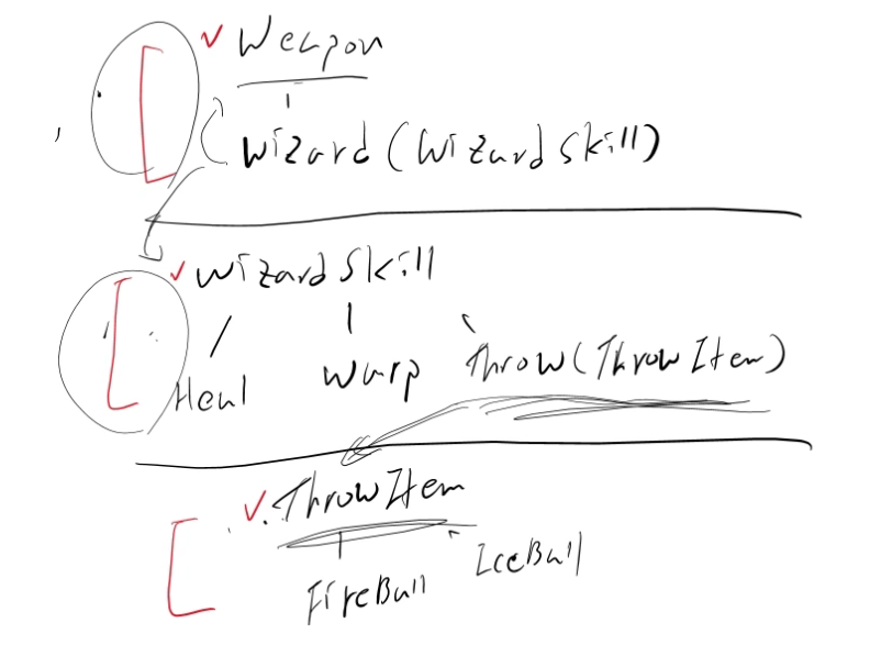 차후에는 Wizard Item 을 구현하고, 하위에 Draw Item, Throw Item 을 구현할 예정이다.