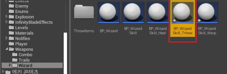2)Wizard > BP_WizardSkill_Heal 복제하여 "BP_WizardSkill_Throw" 생성