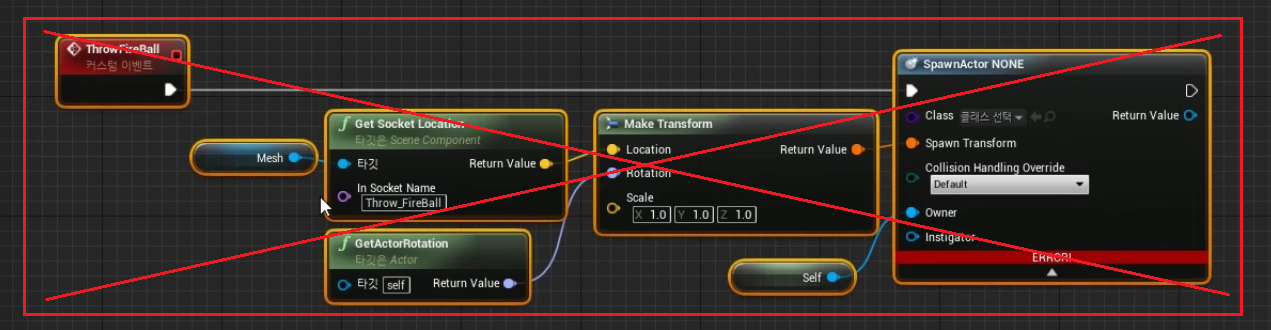 5) BP_Player > 이벤트그래프 > Attacking Event > ThrowFireBall 삭제
