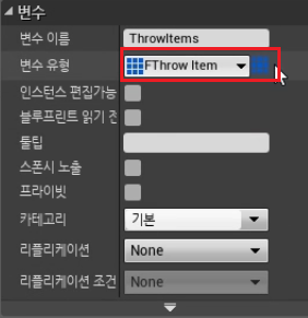 3) 구조체 "FThrowItem" 다음과 같이 세팅
