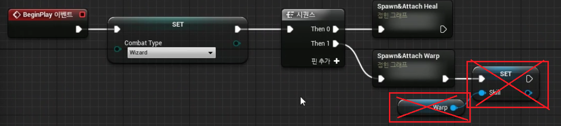 1) BeginPlay 이벤트 > 다음 부분 삭제