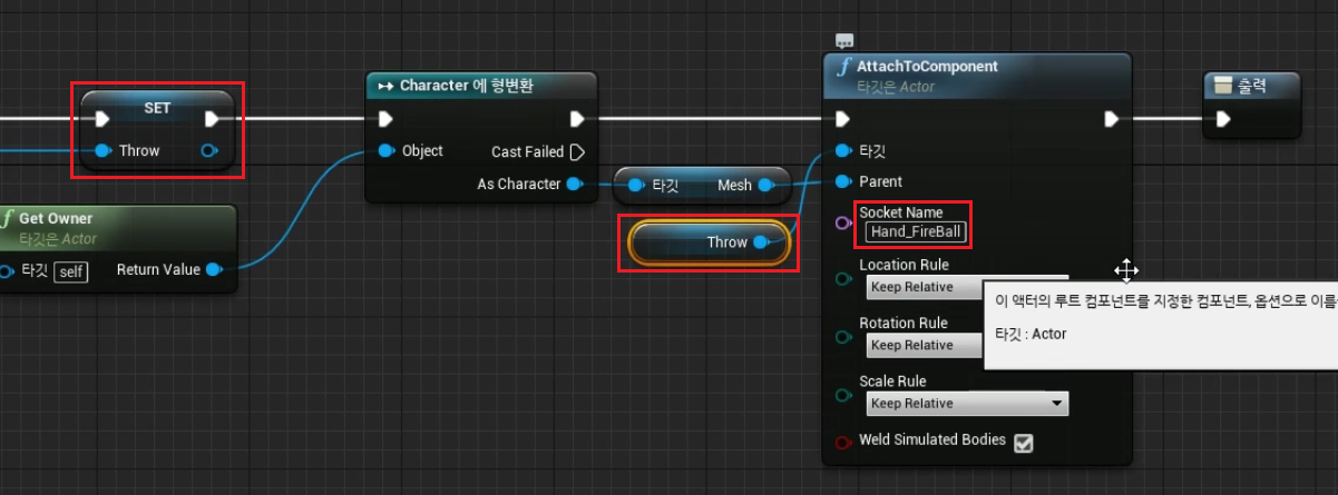 BP_WizardSkill_Throw > 이벤트 그래프 다음과 같이 세팅