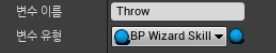 3) "Spawn&Attach Throw" > BP_Wizard Skill 오브젝트 레퍼런스 형 "Throw" 변수 생성