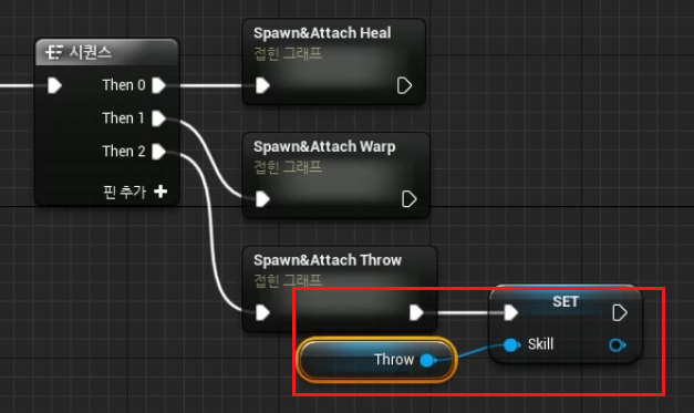 다음과 같이 새로만든 Throw 를 스킬에 할당하여 준다.