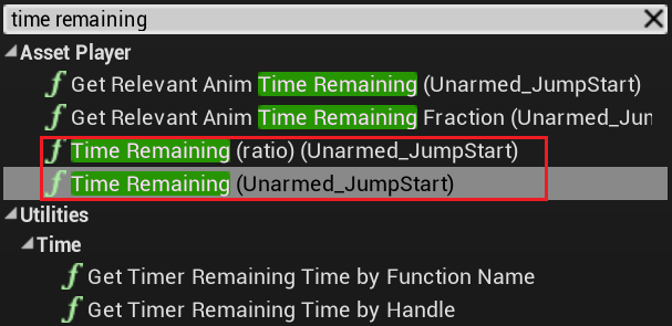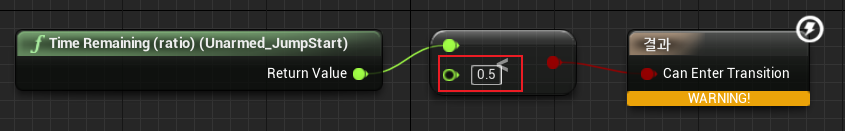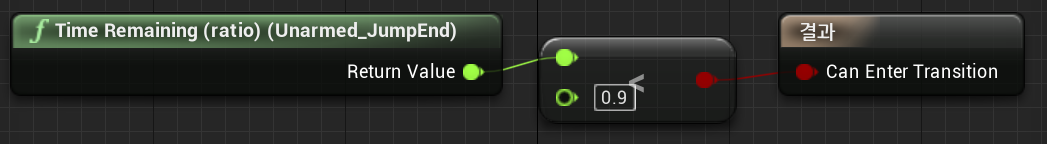1) Transform > Time Remaining(ratio) (Unarmed_JumpStart) 생성 > "float < float"를 사용해서 연결