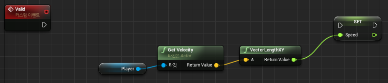 * Jump가 공중에 있느냐 등을 판단하는 CharacterMovement 의 값을 가져다가 쓰고있고, CharacterMovement는 Pawn 에 Movement Component 를 상속받은 상태이기 때문에 get character movement component 함수는 찾을 수 없지만 get movement component로 검색해 찾을 수 있음