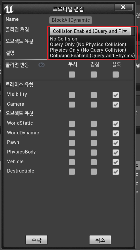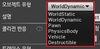 2) 오브젝트 유형 : 충돌을 검출(체크) 하려는 오브젝트의 유형