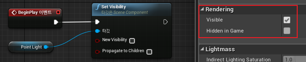 3) Set Visibility 함수 가져오기 (Rendering > Visible에 영향을 미침)
