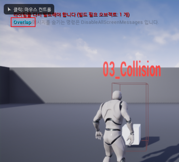 게임모드를 플레이 하면 다음과 같이 "Overlap" 로그가 뜨는 것을 확인 할 수 있다.