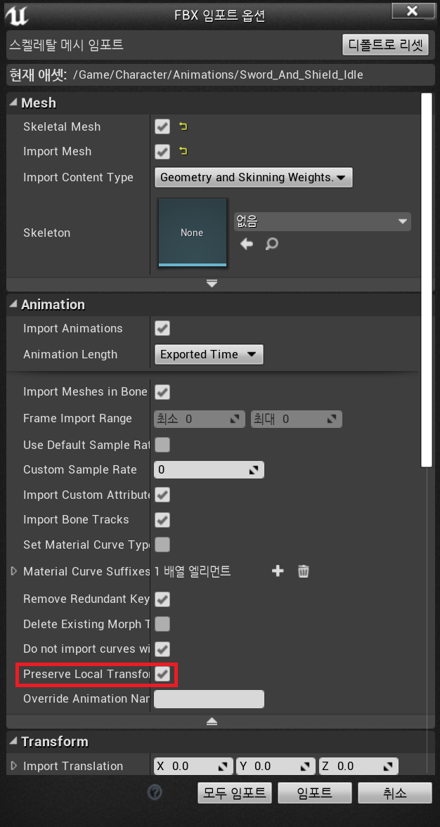 위 글을 참고해서 "Preserve Local Transform" 토글을 활성화도 해보고