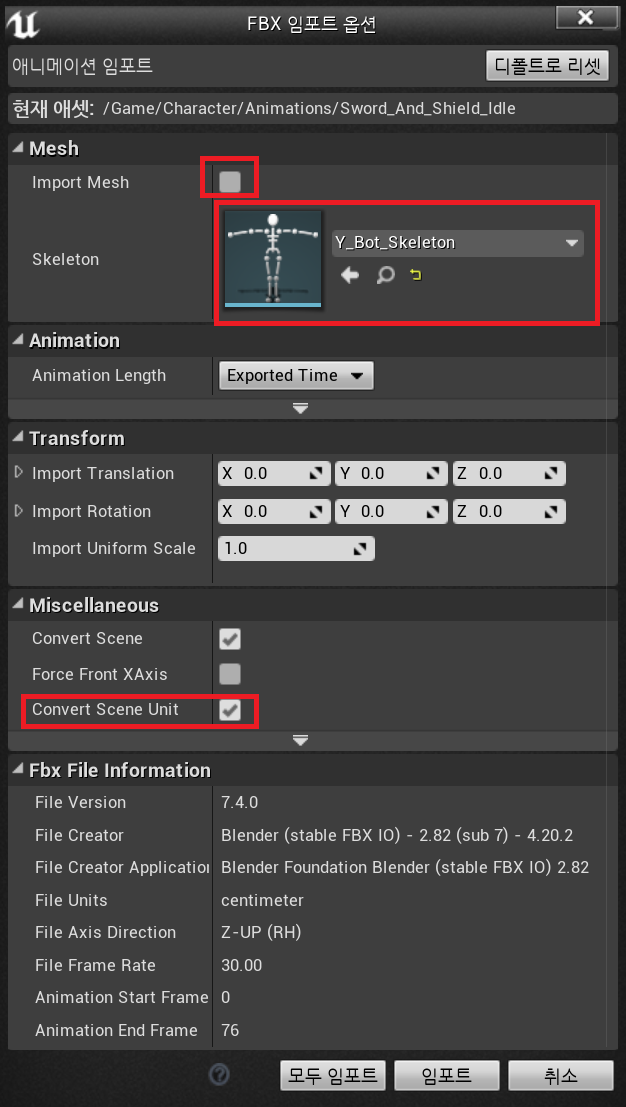 <애니메이션 임포트 진행 중 발생한 오류>