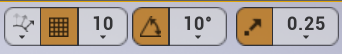 * 첫번째 location, 두번째 angle, 세번째 scale 스냅 버튼