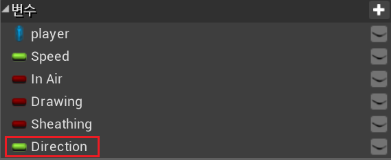 --1) "ABP_Player" 애니메이션 블루프린트로 이동, 변수 " Direction " float 형으로 생성