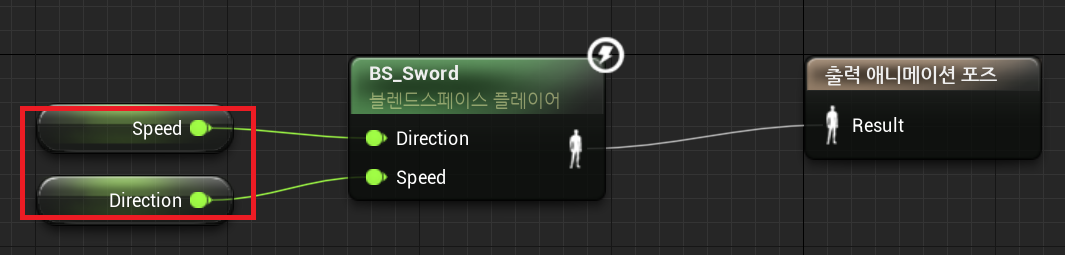 1. 블렌드 스페이스 플레이어에 Direction 과 Speed 변수 값이 입력됨