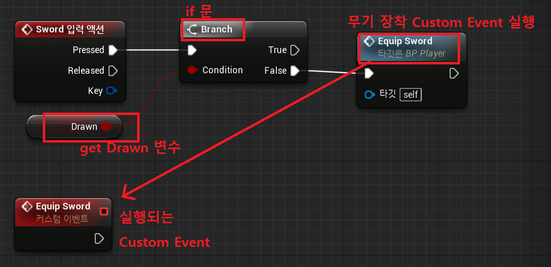 --4) 실행되는 "Equip Sword" Custom Event 구현
