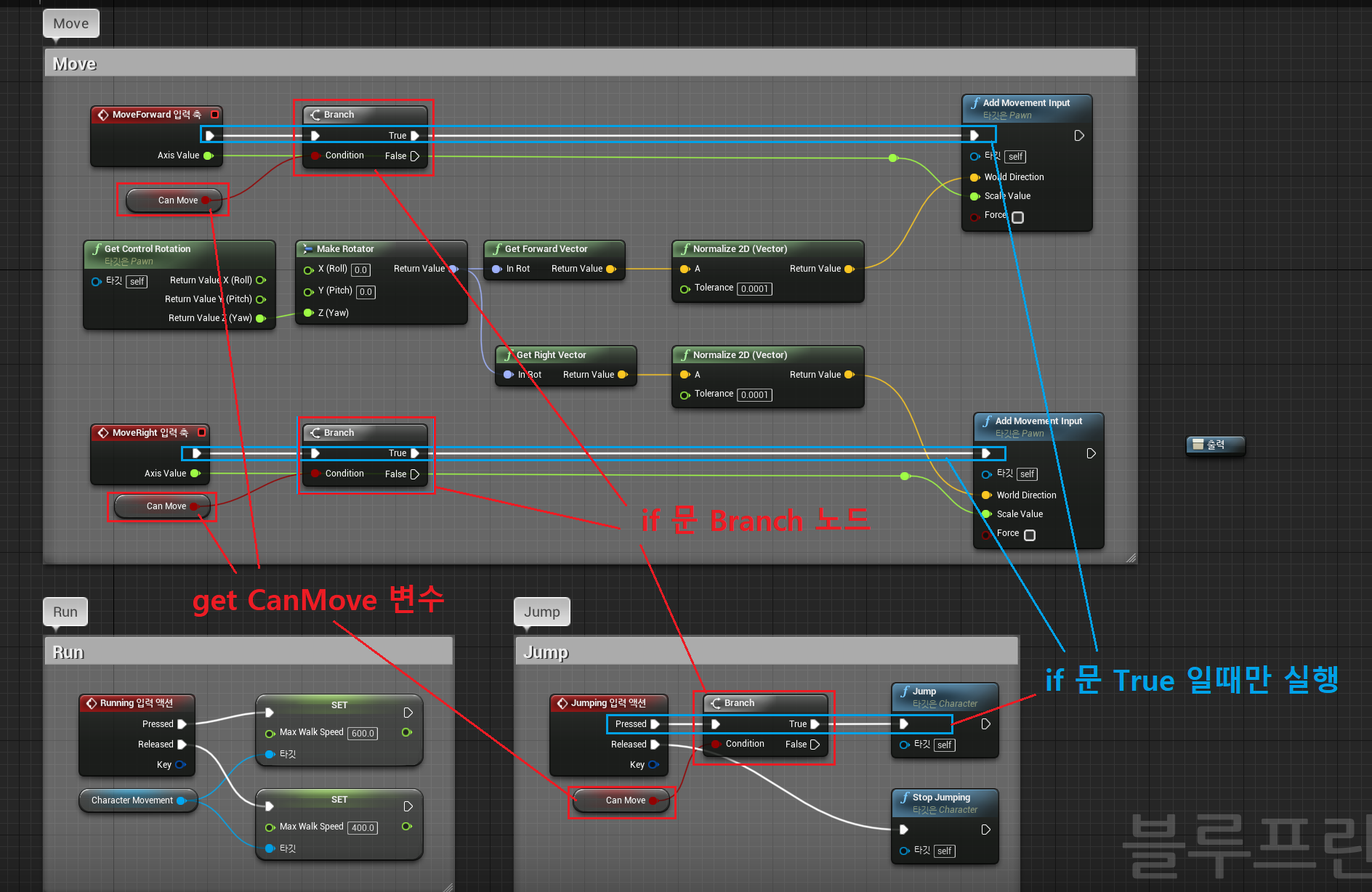 - 좌후전후 움직임과 점프가 CanMove true 일 때만 일어날 수 있도록 수정