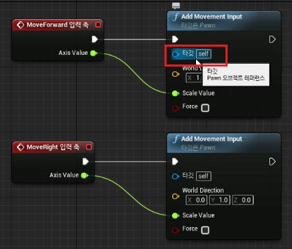 따라서 "Add Movement Input" 은 입력을 받아 움직임이 가능한 함수