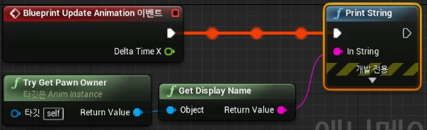 - Try Get Pawn Owner : 지금 ABP_Player를 소유하고 있는 오너 (현재는 BP_Player - Mesh), 게임 모드일 때만 Character를 돌려준다 ex) 플레이 버튼을 눌렀을때만 지속해서 BP_Player (소유오너)를 출력