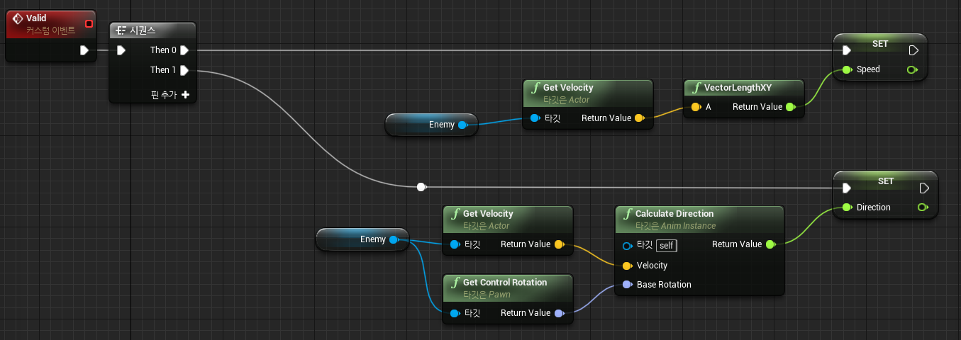 3) Valid 에서 Speed, Direction 값 가져오는 것 제외하고 다 삭제 및 핀 제거