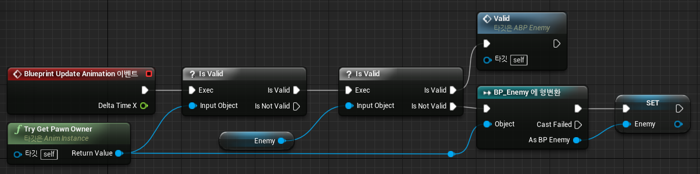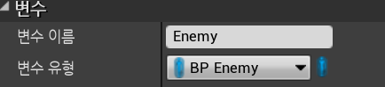 2) 자료형 BP_Enemy "Enemy" 변수생성 밑 Player 대신으로 교체해주기.