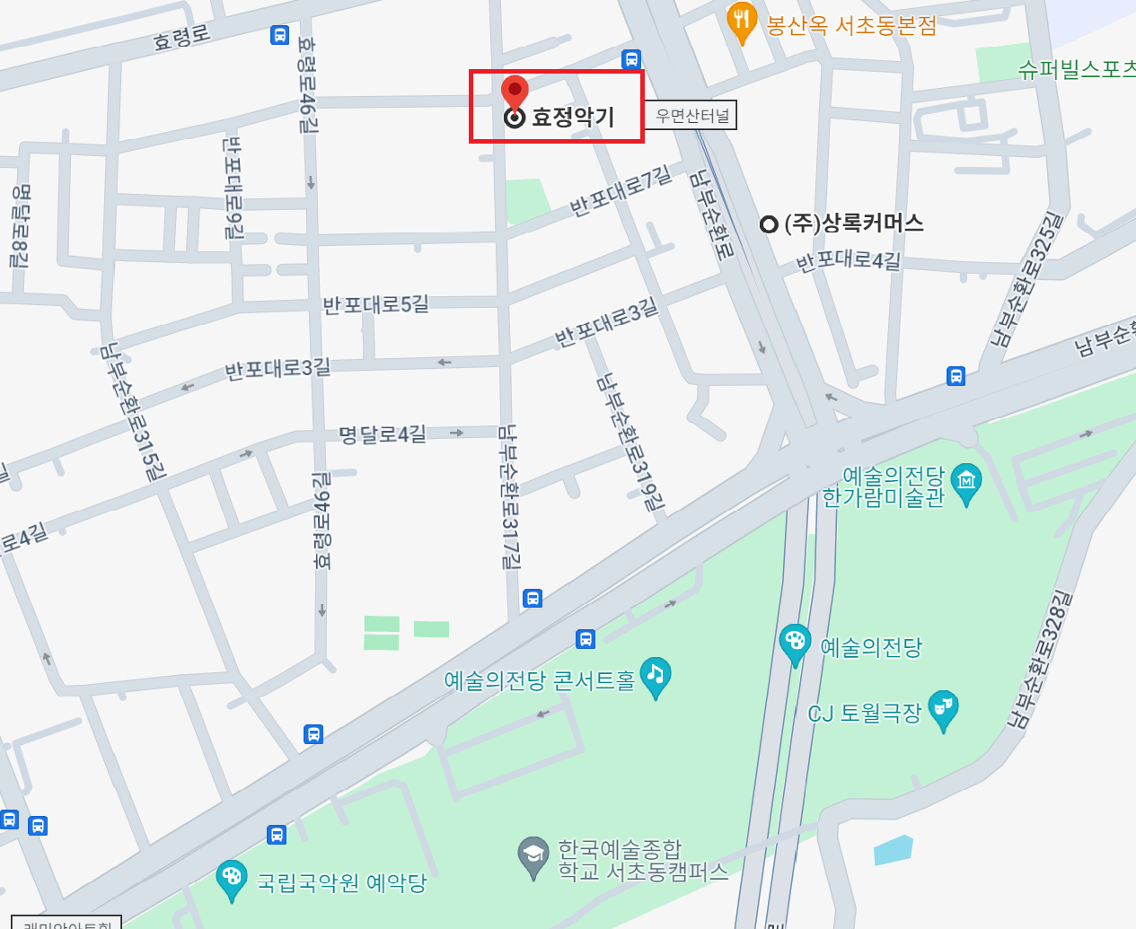 서초쪽 악기거리에서 효정악기를 찾아보고, 공연이 끝나고 나와 같이 갈 계획을 한 것이다