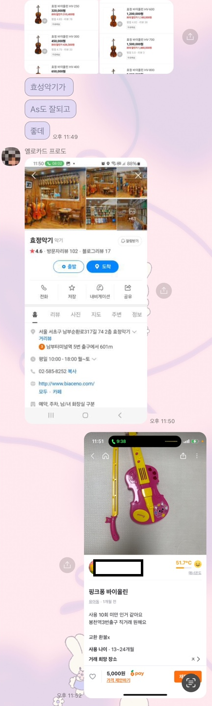 나는 그에 대해 가격이 너무 비싸 또 다른 옵션인 핑크퐁 바이올린을 첨부하였다.