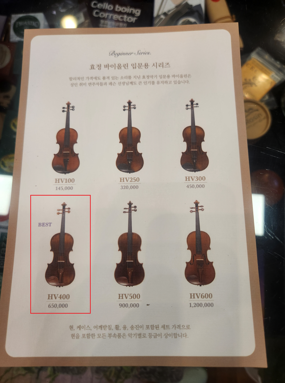 - 100 : 키와 팔이 계속 자라서 바이올린을 계속 바꾸어주어야 하는 아이들을 위한 제품